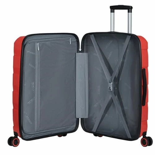 Der farbenfrohe American Tourister Summer Air Move ist wie für die Reise gemacht, denn alleine durch sein Erscheinen kommt Urlaubsstimmung auf. Die Reiseutensilien können bequem im großen Hauptfach, dem separatem Fach und den Reißverschluss-Innenfächern untergebracht werden. Für einen angenehmen Reisekomfort sorgen die vier 360-Grad Rollen, die Handgriffe sowie die mehrfach arretierbare Trolleystange. Das Im Koffer integrierte TSA-Zahlenschloss mit frei wählbarer Zahlenkombination (dreistellig) und das aus PET-Flaschen recycelte Polycarbonat runden den American Tourister Air Move Trolley ab.