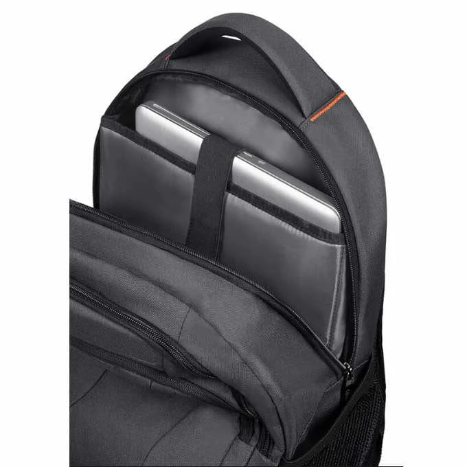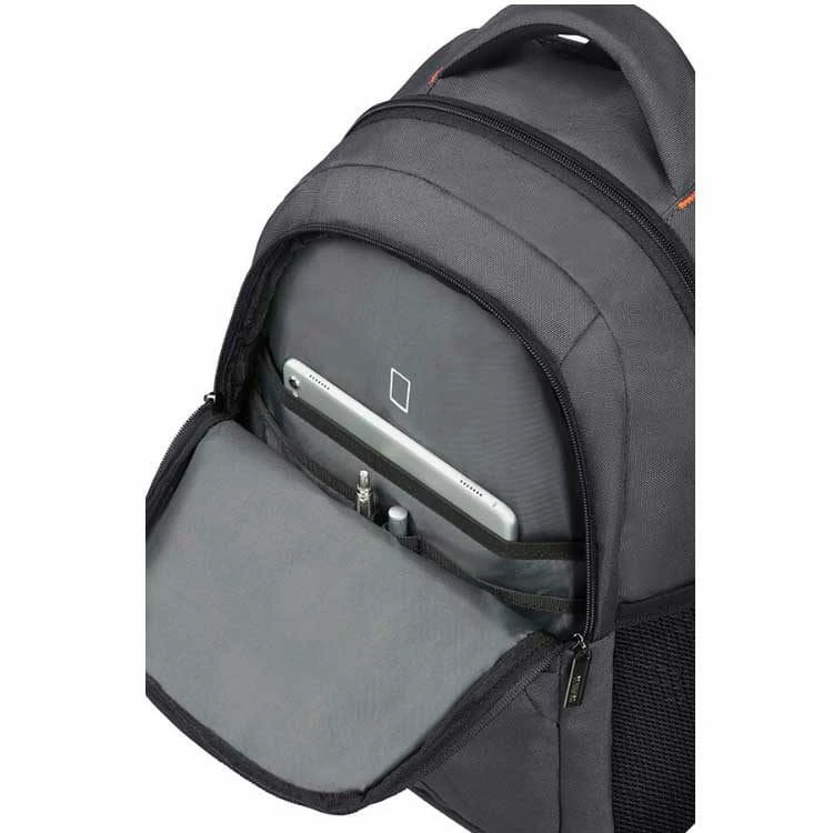 Der American Tourister at Work Laptop-Rucksack bietet mit seinen beiden Reißverschluss-Vortaschen, dem Organizerfach mit 10,1 Zoll Tabletfach, dem großen Hauptfach mit integriertem Laptopfach (bis 15,6 Zoll) und den beiden Netz-Seitentaschen viel Stauraum und Ordnungsmöglichkeiten – auch für modernste Geräte. Dank der Handtrage-/Aufhängeschlaufe und der beiden verstellbaren sowie gepolsterten Schultergurte ist der American Tourister at Work Laptop-Rucksack in jeder Situation bestmöglich zu transportieren bzw. aufzuhängen.