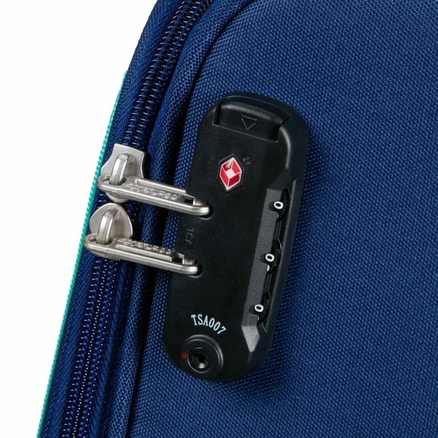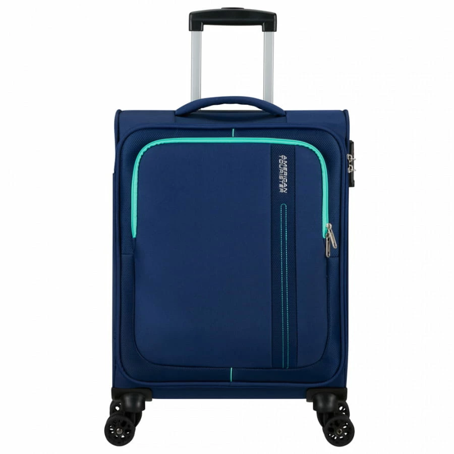 Der American Tourister Sea Seeker Trolley kann dank seines zeitlosen Designs sowohl für den Urlaubs oder die Geschäftsreise verwendet werden. Die mitgeführten Utensilien finden in der großen Reißverschluss-Vortasche, im großen Hauptfach mit integrierten Packriemen und dem großen Netz-Innenfach Platz. Der Koffer kann zudem mit dem integrierten TSA-Zahlenschloss (3-stellige Kombination frei wählbar) verschlossen werden. Transportiert wird er mithilfe der Handgriffe, der arretierbaren Trolleystange und der vier 360-Grad Doppelrollen. Dank des hochwertigen Polyesters ist er zudem besonders leicht, wasserabweisend und strapazierfähig.