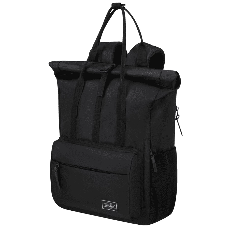 Der handliche American Tourister UG25 Tote Rucksack eignet sich sowohl als Tagesrucksack oder Handtasche und bietet mit 20,5 Liter Volumen (durch den Rolltop-Verschluss zusätzlich erweiterbar) erstaunlich viel Platz. Dieser teilt sich auf eine Reißverschluss-Vortasche, zwei Seitentaschen und das große Hauptfach mit integrierter Flaschenhalterung, einem 15,6 Zoll Laptopfach sowie einem Tabletfach (10,5 Zoll) auf. Getragen wird der Rucksack mithilfe der stufenlos verstellbaren Schultergurte oder den Tragegriffen. Das verarbeitete Polyester ist nicht nur aus recycelten PET-Flaschen gefertigt, sondern auch wasserabweisend, strapazierfähig und leicht zu reinigen.