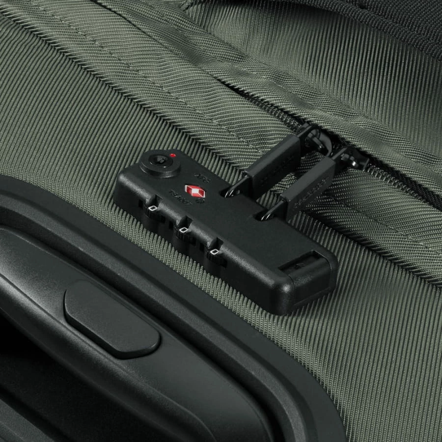 Die American Tourister Urban Track Reisetasche eignet sich für Alle, die organisiertes Packen und Tragen schätzen. Mit zwei Reißverschluss-Vortaschen und dem zweigeteilten Hauptfach mit zwei separaten Innenfächern (inklusive Packriemen) bietet die Rollentasche viel Platz und Ordnungsmöglichkeiten. Zwei Rollen, die mehrfach arretierbare Trolleystange und Handtragegriffe sorgen für einen hohen Transportkomfort. Weitere Features sind das TSA-Zahlenschloss (Kombination frei wählbar), der verstärkte Boden sowie das strapazierfähige und aus PET-Flaschen recycelte Polyester.