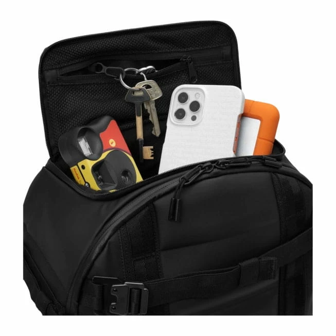 Der Db Journey Ramverk Pro Rucksack 32 L ist der ideale Fotorucksack für unterwegs. Mit seiner flexiblen Inneneinteilung passt er perfekt zu mittleren und kleinen Kameraeinsätzen und bietet genügend Platz für einen Fotoapparat und Zubehör. Die Seiten- und Frontgurte machen das Tragen besonders einfach und bequem, während die Frontöffnung einen schnellen Zugriff ermöglicht. Innentaschen aus Netzstoff und eine obere Tasche mit Kabelorganizer sorgt für genug Platz, um dein Equipment sicher und geordnet aufzubewahren. Das 16 Zoll (ca. 41 cm) Laptopfach ist perfekt für diejenigen, die auch auf Reisen nicht auf ihren Laptop verzichten möchten. Die ergonomischen Schultergurte, der Brustgurt sowie der Hüftgurt sorgen für eine optimale Gewichtsverteilung und reduzieren Belastungen auf lange Sicht. Dank zweiteiliger Haken und Gurtversteller ist der Rucksack individuell anpassbar und somit für jeden Körperbau geeignet. Der wasserabweisende Hauptreißverschluss schützt dein Equipment vor Feuchtigkeit und die Stativgurte ermöglicht eine sichere Möglichkeit, dein Stativ mitzunehmen. Der Rucksack ist zudem kompatibel mit dem Hook-Up System. Das tarnfarbene All-Black Design mit diskreter Markierung macht den Rucksack zu einem absoluten Hingucker.