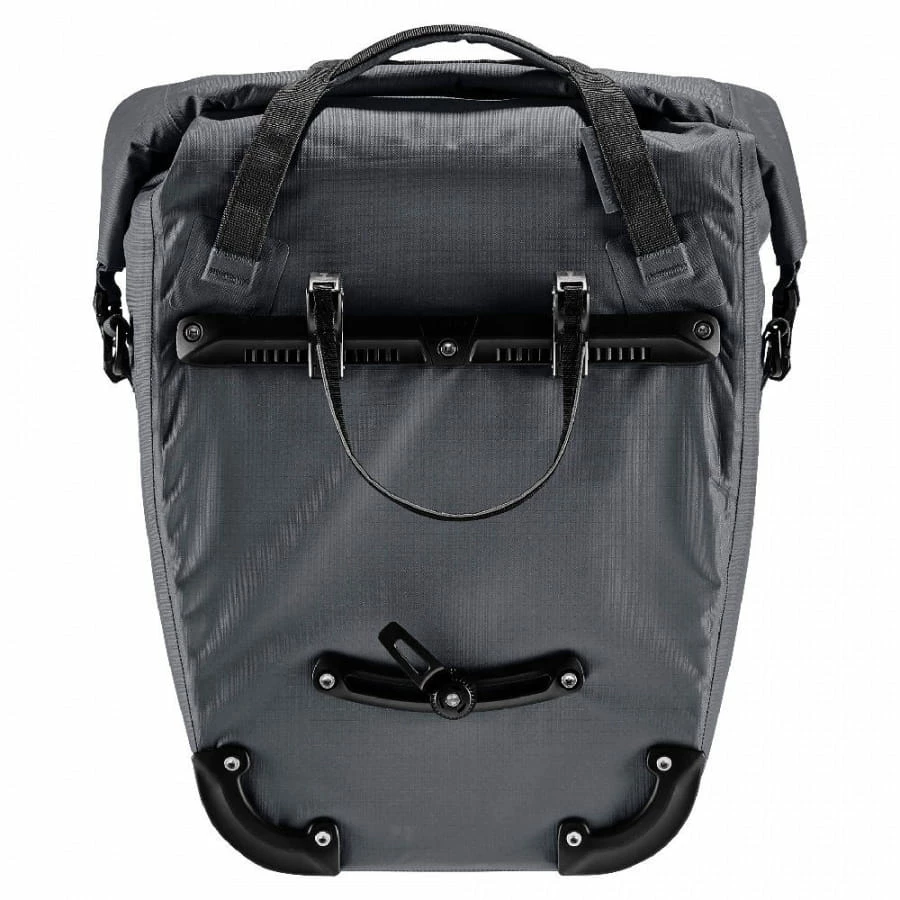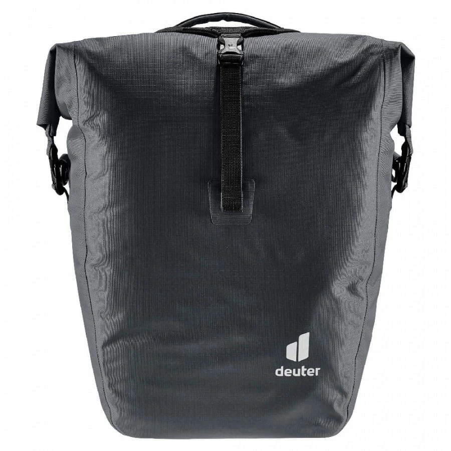 Die Deuter Weybridge 25+5 Fahrradtasche ist die ideale Tasche für Radler egal wo sie hinfahren. Die Fahrradtasche wird aus einem wasserdichten Material hergestellt damit alles was sich in der Tasche befindet, vor Nässe bei Regen geschützt wird. Die Tasche besitzt ein geräumiges Hauptfach mit einer großen Kapazität von 25 Liter, welche noch um zusätzliche 5 Liter erweitert werden könnte. Das Hauptfach verfügt über zahlreiche Organisationsfächer (ein Laptop Fach, ein Wertsacheninnenfach und andere gut durchdachten Fächer), welche für eine optimale Ordnung und eine perfekte Raumaufteilung sorgen. Mit Hilfe eines Roll-Tops Verschluss wird die Wandertasche geöffnet und das Volumen erweitert. Für eine optimale Bewegungsfreiheit und einen zuverlässigen Halt der Fahrradtasche sorgt die integrierte BagFix Halterung mit zwei Führungsschienen und Haken inkl. drei Reduzierungseinlagen (16-10 mm Durchmesser). Die Deuter Weybridge 25+5 Fahrradtasche ist vielseitig einsetzbar und kann sowohl als Aufbewahrungstasche, als auch als Schultertasche verwendet werden. Eine weitere Besonderheit der sportlichen Tasche sind der abnehmbare Schultergurt und der verstellbare Tragegriff-Verschluss mit Universalhalterung, welche sehr praktisch ist, um die Isomatte, die Yogamatte oder die Jacke zu transportieren. Der Taschenboden wird mit einem Kantenschutz ausgestattet und die angebrachten Reflektoren tragen dazu bei, dass Sie in der Dunkelheit besser und frühzeitig erkannt werden.