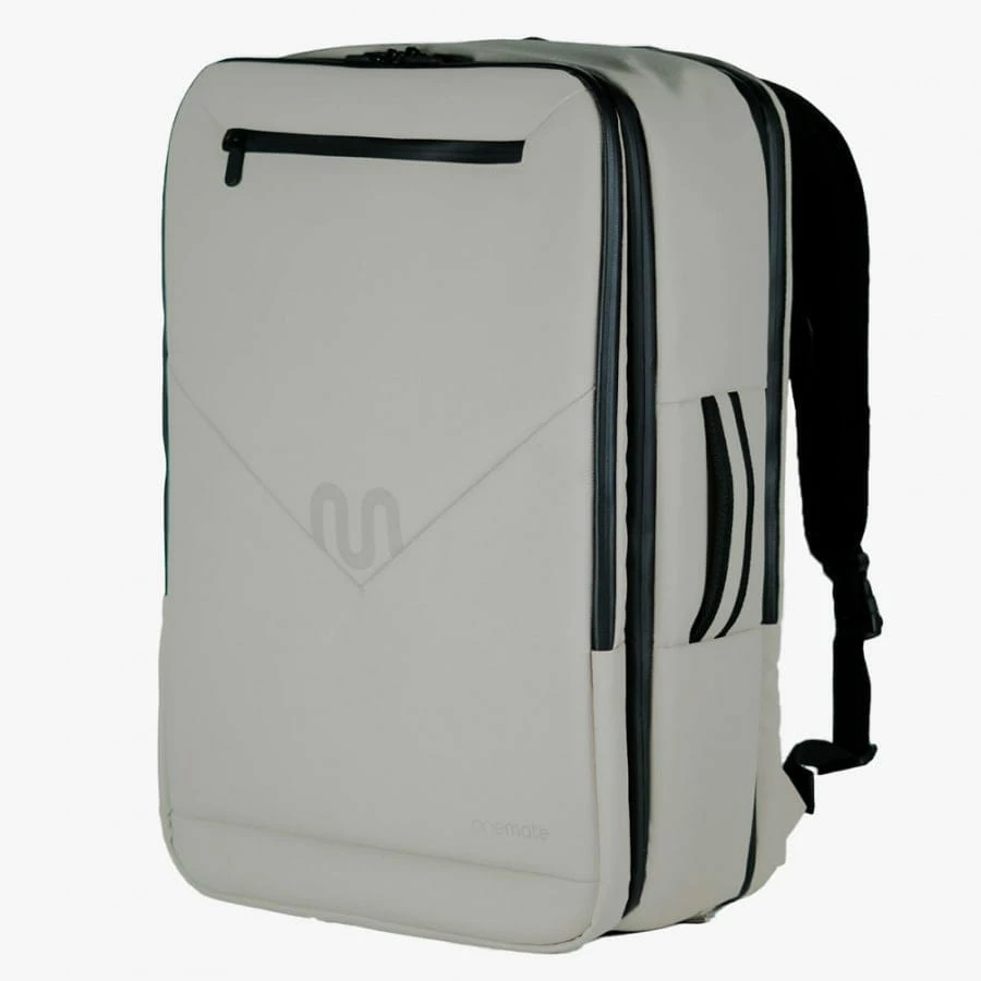Anstatt eines Kabinentrolleys kann man auch Rucksäcke wie den Onemate Apollo als Handgepäck mit in das Flugzeug nehmen. Dieser ist dank des gepolsterten Rückens, der Stufenlos verstellbaren Schultergurte sowie des Brust- und Hüftgurtes besonders komfortabel und flexibel zu transportieren. Die Reiseutensilien lassen sich in der Reißverschluss-Vortasche und im großen, seitlich aufklappbaren Hauptfach (welches ähnlich aufgebaut ist wie ein Koffer) mit zahlreichen Innenfächern und einem 17,3 Zoll Laptopfach unterbringen. Bei Bedarf kann das Volumen des Onemate Apollo Rucksack dank der Reißverschluss-Dehnfalte um bis zu 10 Liter erweitert werden. Das verarbeitete Material ist strapazierfähig, leicht zu reinigen und wird aus recycelten PET-Flaschen gewonnen.