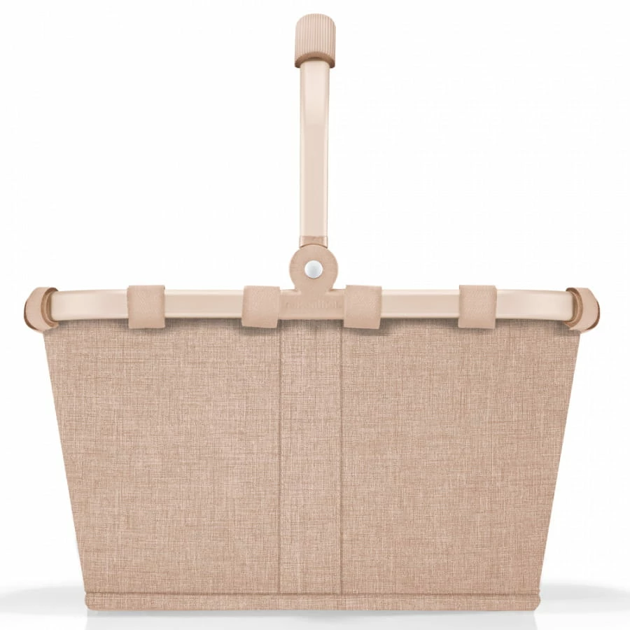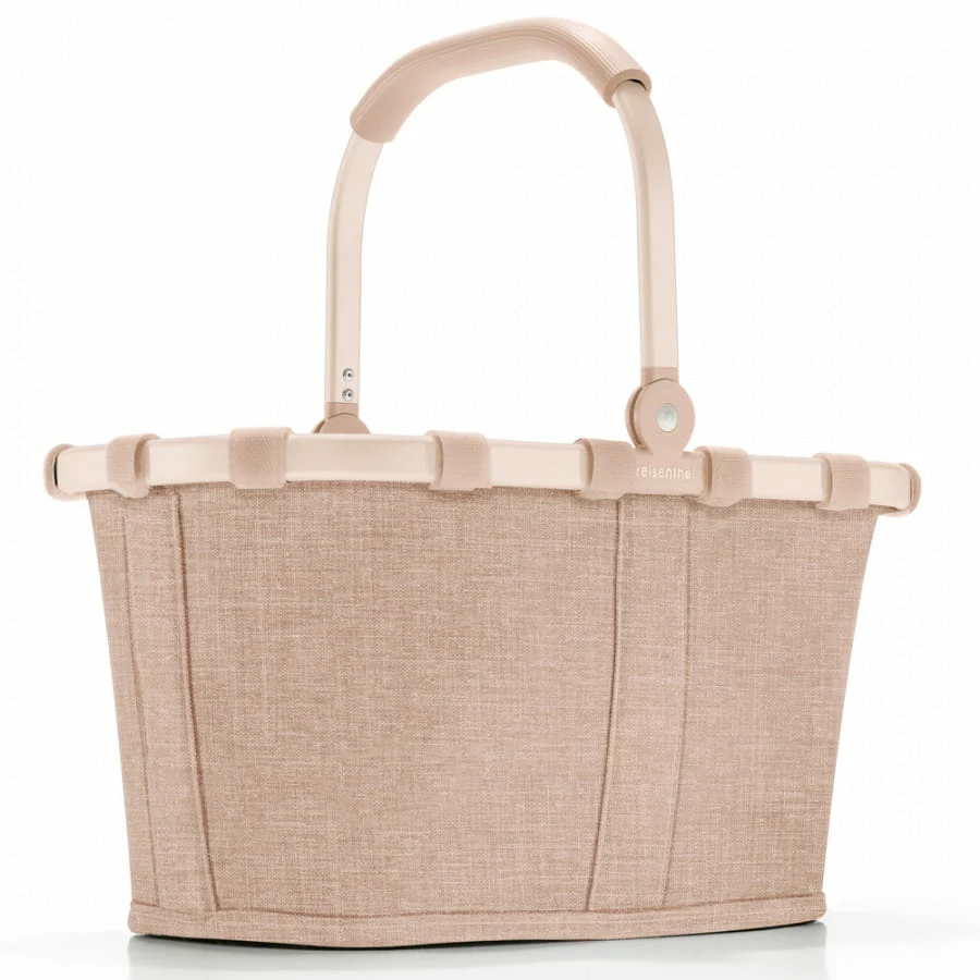Die Mini-Ausgabe des berühmten Reisenthel Carrybag hat die Abmessungen von 33,5 x 21 x 19,5 cm, ein Volumen von 5 Litern und eignet sich bestens zum Shoppen, für den Einkauf auf dem Wochenmarkt oder für ein Picknick. Mit seinem großen Hauptfach und einem separatem Reißverschluss-Innenfach bietet er ausreichend Stauraum. Der Griff des Reisenthel Carrybag XS ist weich ummantelt und umklappbar – so wie der ganze Korb, denn dieser kann bei Bedarf flach zusammengelegt werden. Das verarbeitete Polyester ist hochwertig, leicht zu reinigen und wasserabweisend. Der feste Boden mit Standfüßen sorgt für stabilität beim Abstellen des Korbes.