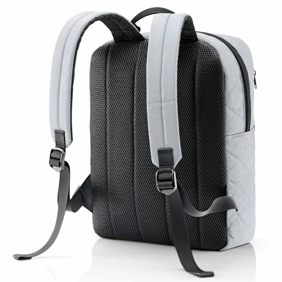 Der Reisenthel Classic Backpack M eignet sich für Arbeit, Freizeit und Reisen. Mit 13 Litern Volumen bietet er auf den Abmessungen von 28 x 39 x 12 cm genug Stauraum und Ordnungsmöglichkeiten, welche sich auf ein Reißverschluss-Außenfach und das große Hauptfach mit separatem 13 Zoll Laptopfach aufteilen. Für einen festen Stand am Boden und Formstabilität sorgt die rechteckige Form sowie der gesteppte Stoff. Das verarbeitete Polyester wird aus PET-Flaschen recycelt und ist besonders wasserabweisend, hochwertig sowie strapazierfähig. Getragen wird der Reisenthel Classic Backpack M mithilfe des Multifunktionsgriffes, der stufenlos verstellbaren Schultergurte und des mit Mesh gepolsterten Rückenteils.