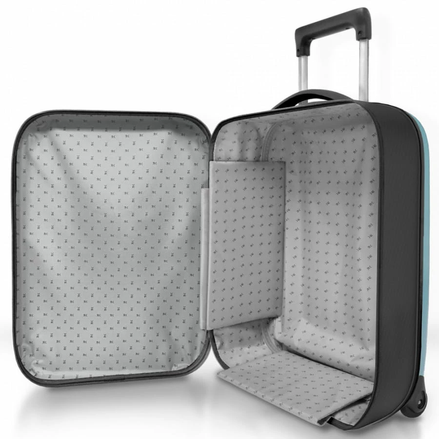 Dieses minimalistische und leichte Handgepäck ist einfach der perfekte Begleiter durch seine praktischen Teile. Es lässt sich einfach auf nur 5 cm zusammenfalten. Sie können es somit bequem im Schrank oder in einem größeren Koffer verstauen. Der Rollink Boardtrolley bietet zusätzlich einen großen Stauraum für nötigen Reiseutensilien. Transportiert wird der Rollenkoffer mithilfe der arretierbaren Trolleystange oder durch den Handgriff für eine bessere Handhabung. Das belastbare Polycarbonat Material ist besonders leicht zu reinigen und hochgradig wasserabweisend.