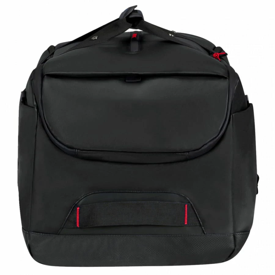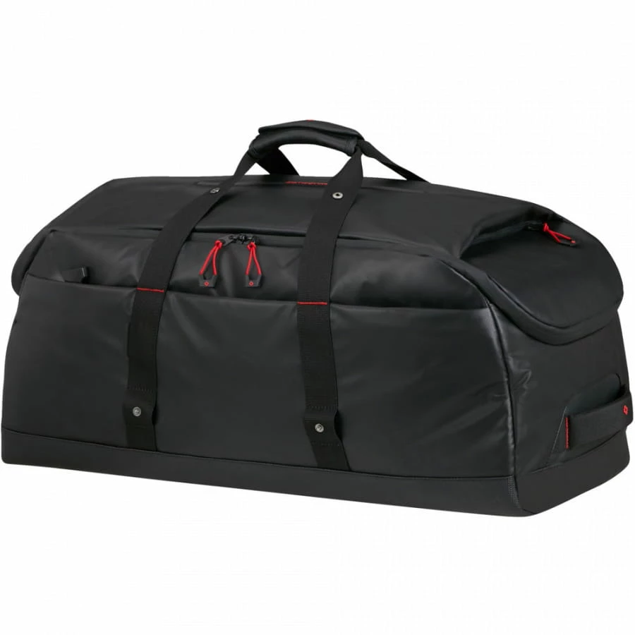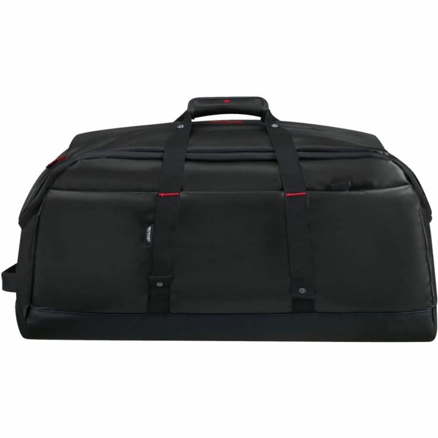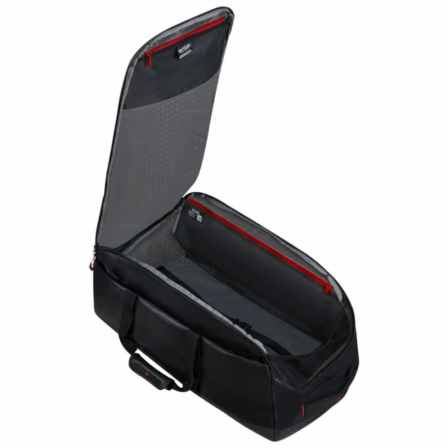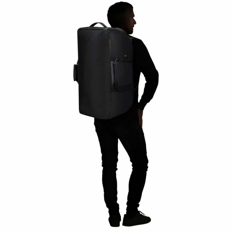 Mit Reißverschluss-Außentaschen und dem großen Hauptfach mit Innenfächern bietet die Samsonite Ecodiver Reisetasche auf insgesamt 90 Litern Volumen jede Menge Stauraum für Ihre Reise. Getragen wird sie entweder mithilfe der Handgriffe, dem Schultergurt (auch abnehmbar) oder der Rucksacktragegurte. Das Material ist besonders wasserabweisend, leicht zu reinigen, strapazierfähig und aus PET-Flaschen recycelt.