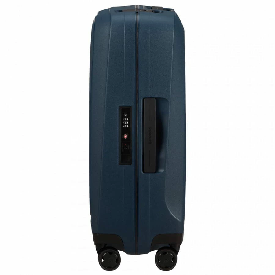 Der Samsonite Essens Trolley ist die perfekte Wahl für Reisende, die Wert auf Stil und Funktionalität legen. Dieser hochwertige Koffer ist mit den neuesten Technologien sowie Materialien ausgestattet und bietet eine robuste und langlebige Lösung für alle Reisebedürfnisse. Das Außenmaterial des Trolleys besteht aus einem leichten aber widerstandsfähigen Polypropylen (70 Prozent recycelt), das gegen Stöße und Kratzer geschützt ist. Das im Inneren verarbeitete Polyester wird aus recycelten PET-Flaschen hergestellt, ist also besonders nachhaltig. Die vier Doppellaufrollen garantieren einfaches Manövrieren, leises Rollen und Stabilität. Die ergonomischen Griffe sorgen für ein bequemes Tragen und das integrierte TSA-Schloss bietet zusätzlichen Schutz für Ihre wertvollen Gegenstände. Innen bietet der Samsonite Essens Trolley viel Stauraum für Ihre Reiseutensilien und zwei Packtaschen (Packfix – per Hand waschbar und mit Tragegriffen), welche herausgenommern werden können. Enthalten sind zudem Design-Sticker, mit welchem der eigene Koffer individualisiert werden kann.