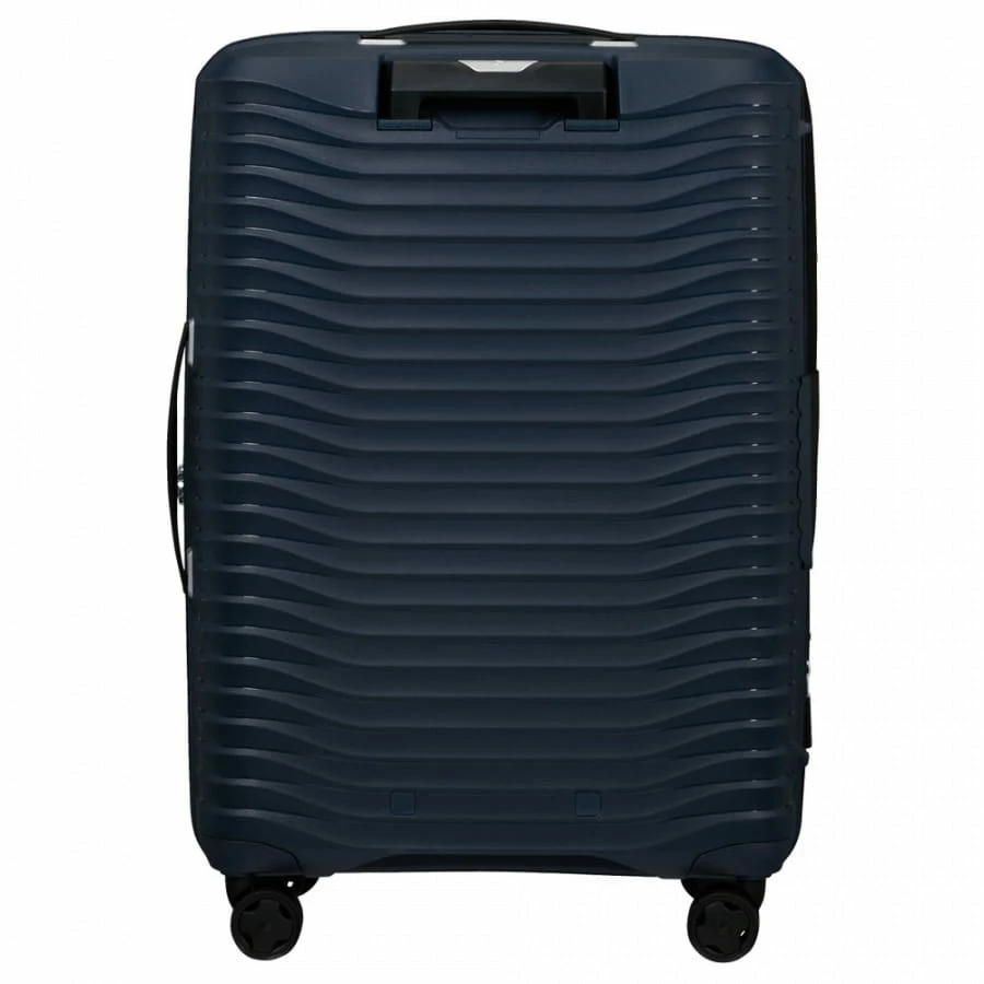 Der Samsonite Upscape Trolley setzt vor Allem auf Komfort und Qualität. Ersteres erreicht er durch die vier gefederten 360-Grad Doppelrollen, die bequemen Handgriffe und die mehrfach arretierbare Trolleystange. Die gewohnte Samsonite Qualität garantieren das moderne Polypropylen und das aus PET-Flaschen recycelte Polyester, welches bei Bedarf herausgenommen und gewaschen werden kann. Auch die Fächer für die Reiseutensilien sind durchdacht gestaltet, denn das große Hauptfach mit Packriemen, die Trennwand mit drei Reißverschlussfächern und ein separates Hemden-/Wäschefach sorgen für viel Stauraum und Ordnungsmöglichkeiten. Weitere Features des Samsonite Upscape Trolley sind das TSA Zahlenschloss, die RV-Dehnfalte zur Volumenerweiterung und ein Adressanhänger.