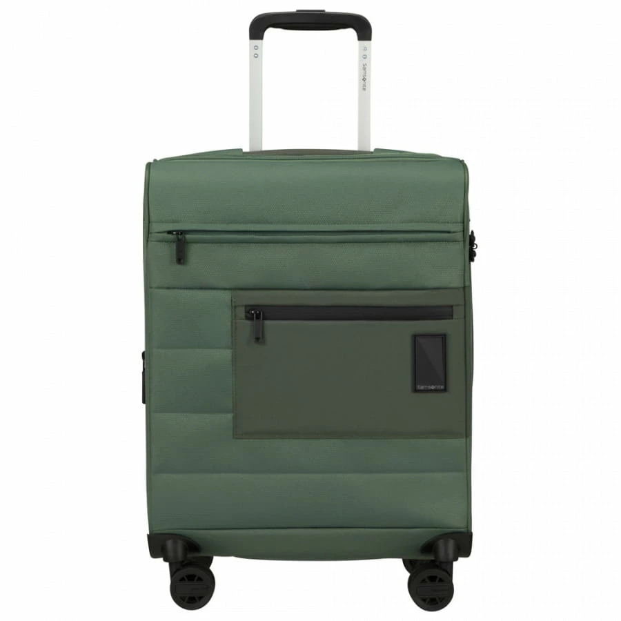 Der Vaycay Trolley besticht nicht nur durch die gewohnte Samsonite Qualität sondern auch durch das zeitgemäße Design. In Punkto Ausstattung glänzt der Weichgepäckkoffer aus recyceltem Polyester mit zwei Reißverschluss-Frontfächern, einem TSA-Zahlenschloss sowie dem doppelseitigen Hauptfach mit integrierten Packriemen. Für den nötigen Transportkomfort sorgen die vier 360-Grad Doppelrollen, bequeme Handgriffe und die mehrfach arretierbare Trolleystange. Weitere Features des Samsonite Vaycay Trolley sind ein Adressfeld, welches Verwechslungen und Verlust vorbeugt, sowie die Reißverschluss-Dehnfalte, mit welcher das Volumen bei Bedarf zusätzlich erweitert werden kann.