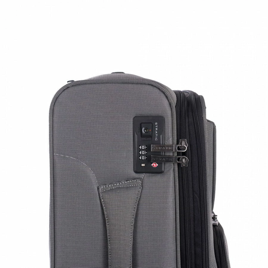 Für ein angenehmes und unkompliziertes Reisen mit Stil sorgt der Stratic Bendigo Light Plus Trolley. Das große Hauptfach, welches durch ein TSA-genormtes Zahlenschloss abschließbar ist, bietet neben dem geräumigen, mit Innenfutter verkleideten Hauptfach mit zwei Packriemen zum Fixieren der Kleidung auch noch ein separates Wäschefach mit Packriemen. An der vorderen Aussenseite des hat der Stratic Bendigo Light Plus zwei große, zusätzliche Reißverschluss-Fächer für den schnellen und unkomplizierten Zugriff. Damit der Transport am Bahnhof, dem Parkplatz oder am Flughafen möglichst unkompliziert verläuft hat der Koffer Handgriffe, eine arretierbare Teleskopstange, die bei Bedarf komplett eingefahren werden kann und vier 360-Grad Doppelrollen.