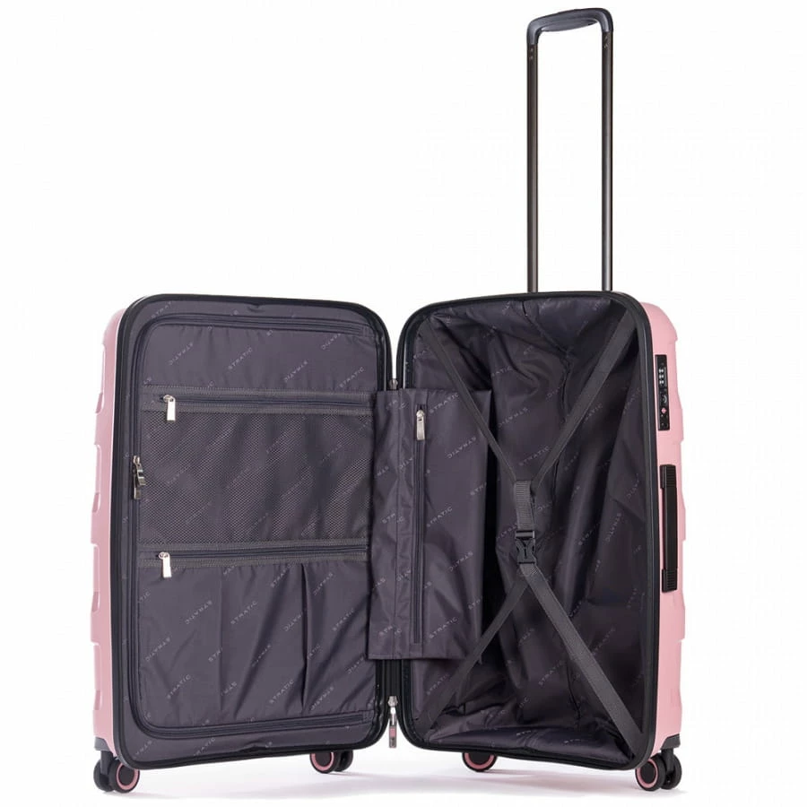 Der Stratic Straw Trolley darf sich wirklich innovativ und nachhaltig nennen, denn das verarbeitete Material des Koffers besteht aus einem Mix aus Polypropylen und Stroh. Dadurch ist der Reise- und Businesskoffer nicht nur besonders robust und leicht, sondern trägt auch seinen Teil zum Umweltschutz bei. In Punkto Ausstattung steht er seinen Kollegen in keinster Weise nach, denn er verfüg über ein TSA-Zahlenschloss, ein zweigeteiltes Hauptfach (durch eine RV-Trennwand), integrierte Packriemen und ein RV-Innenfach. Für den nötigen Komfort auf der Reise sorgen beim Stratic Straw Trolley die mehrfach arretierbare Trolleystange, die vier 360° Doppelrollen und die Handgriffe.