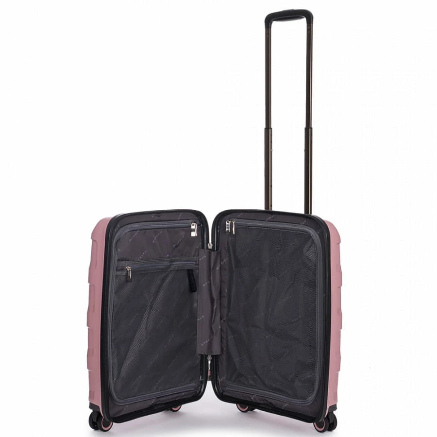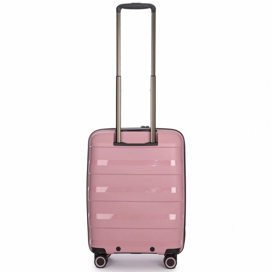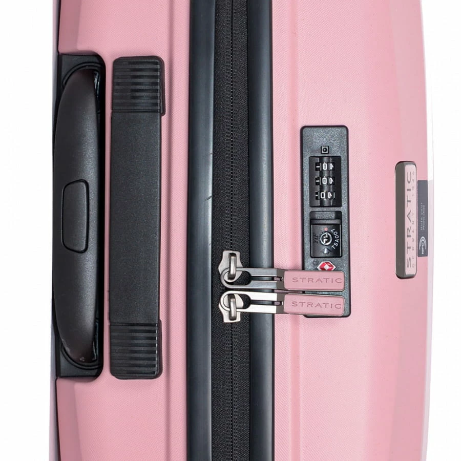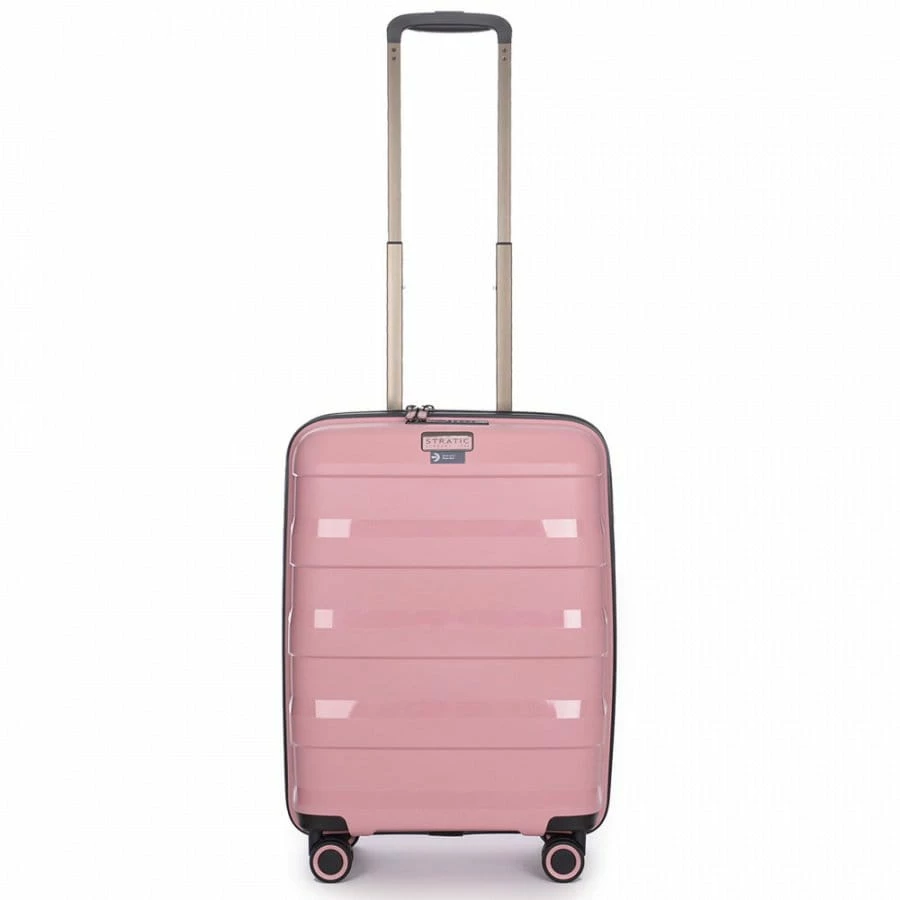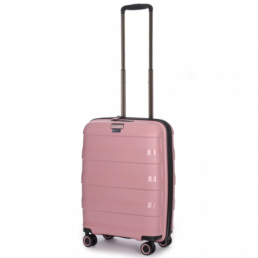 Der Stratic Straw Trolley darf sich wirklich innovativ und nachhaltig nennen, denn das verarbeitete Material des Koffers besteht aus einem Mix aus Polypropylen und Stroh. Dadurch ist der Reise- und Businesskoffer nicht nur besonders robust und leicht, sondern trägt auch seinen Teil zum Umweltschutz bei. In Punkto Ausstattung steht er seinen Kollegen in keinster Weise nach, denn er verfüg über ein TSA-Zahlenschloss, ein zweigeteiltes Hauptfach (durch eine RV-Trennwand), integrierte Packriemen und ein RV-Innenfach. Für den nötigen Komfort auf der Reise sorgen beim Stratic Straw Trolley die mehrfach arretierbare Trolleystange, die vier 360° Doppelrollen und die Handgriffe.