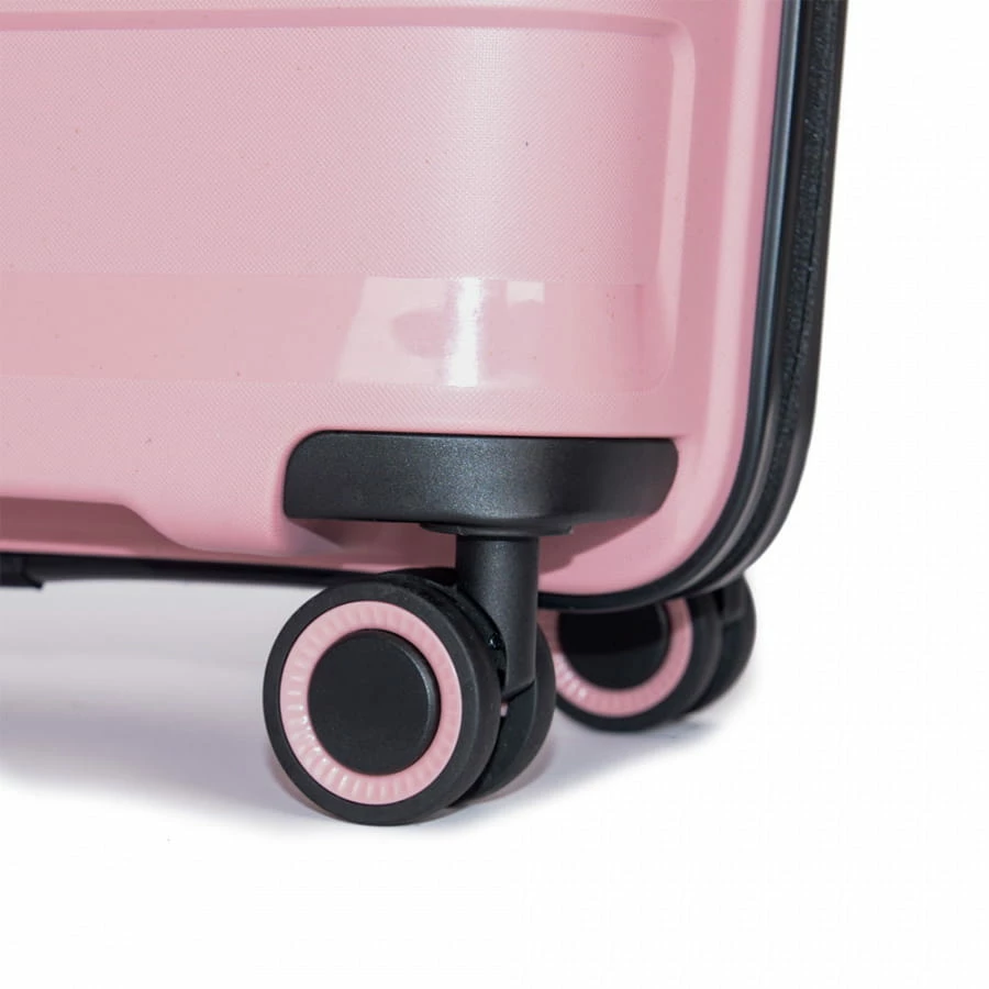 Aufgrund der geringen Abmessungen von 55 x 39 x 20 cm kann der Koffer der Größe S bei den gängigen Fluglinien als Bordgepäck mitgeführt werden.