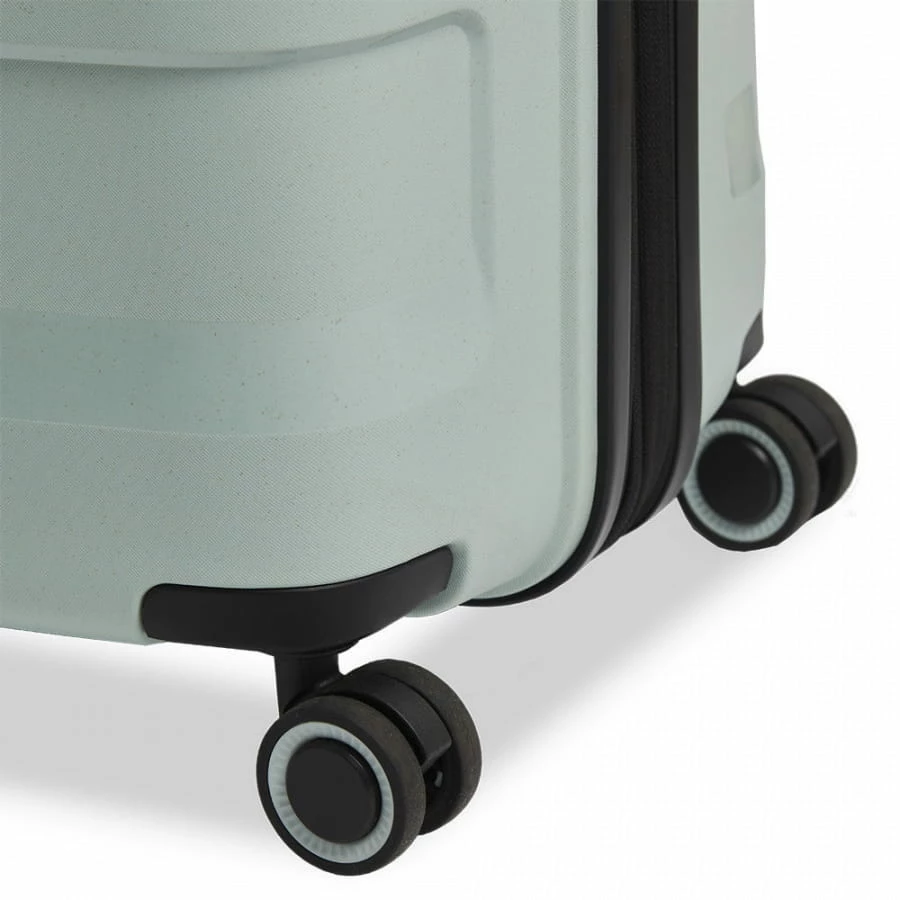 Der Stratic Straw Trolley darf sich wirklich innovativ und nachhaltig nennen, denn das verarbeitete Material des Koffers besteht aus einem Mix aus Polypropylen und Stroh. Dadurch ist der Reise- und Businesskoffer nicht nur besonders robust und leicht, sondern trägt auch seinen Teil zum Umweltschutz bei. In Punkto Ausstattung steht er seinen Kollegen in keinster Weise nach, denn er verfüg über ein TSA-Zahlenschloss, ein zweigeteiltes Hauptfach (durch eine RV-Trennwand), integrierte Packriemen und ein RV-Innenfach. Bei Bedarf kann das Volumen durch die integrierte Reißverschluss-Dehnfalte sogar noch erweitert werden. Für den nötigen Komfort auf der Reise sorgen beim Stratic Straw Plus Trolley die mehrfach arretierbare Trolleystange, die vier 360° Doppelrollen und die Handgriffe.