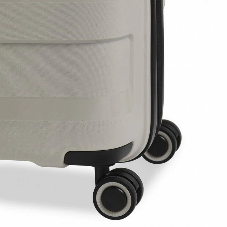 Der Stratic Straw Trolley darf sich wirklich innovativ und nachhaltig nennen, denn das verarbeitete Material des Koffers besteht aus einem Mix aus Polypropylen und Stroh. Dadurch ist der Reise- und Businesskoffer nicht nur besonders robust und leicht, sondern trägt auch seinen Teil zum Umweltschutz bei. In Punkto Ausstattung steht er seinen Kollegen in keinster Weise nach, denn er verfüg über ein TSA-Zahlenschloss, ein zweigeteiltes Hauptfach (durch eine RV-Trennwand), integrierte Packriemen und ein RV-Innenfach. Bei Bedarf kann das Volumen durch die integrierte Reißverschluss-Dehnfalte sogar noch erweitert werden. Für den nötigen Komfort auf der Reise sorgen beim Stratic Straw Plus Trolley die mehrfach arretierbare Trolleystange, die vier 360° Doppelrollen und die Handgriffe.