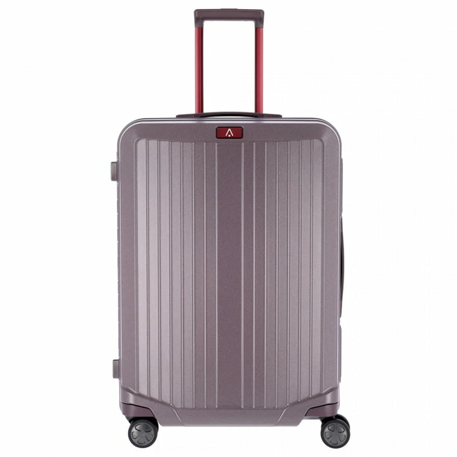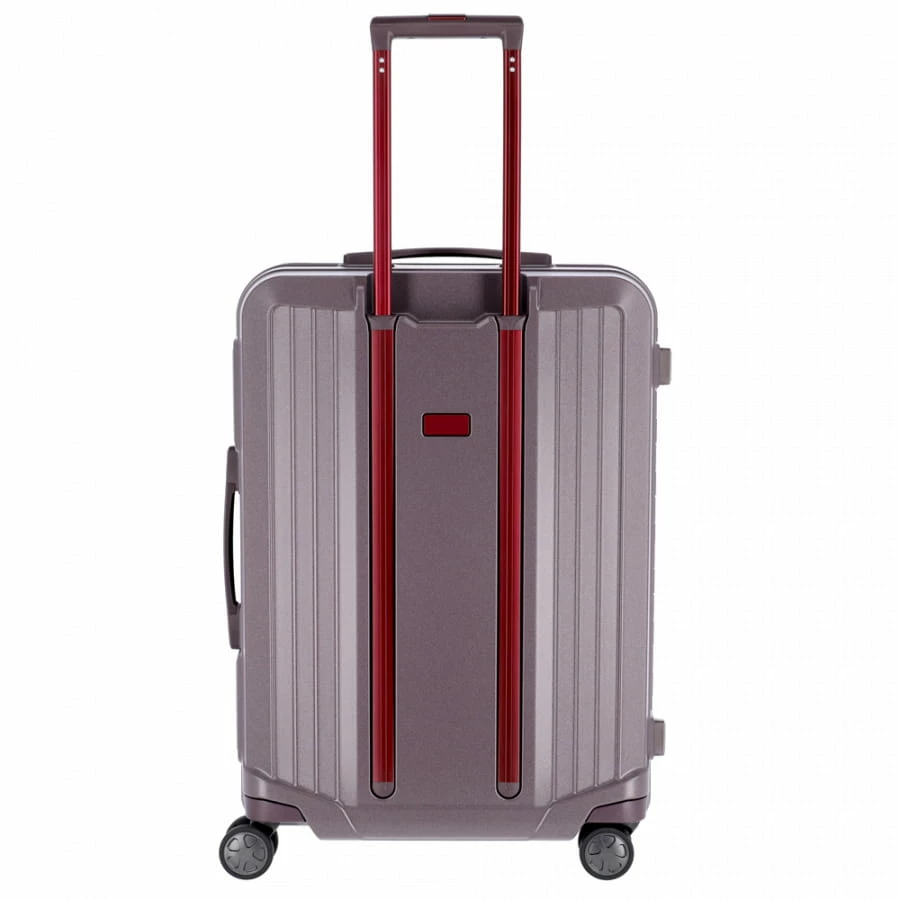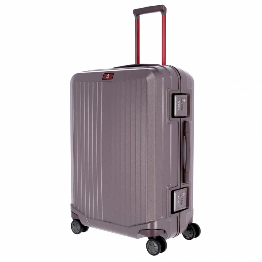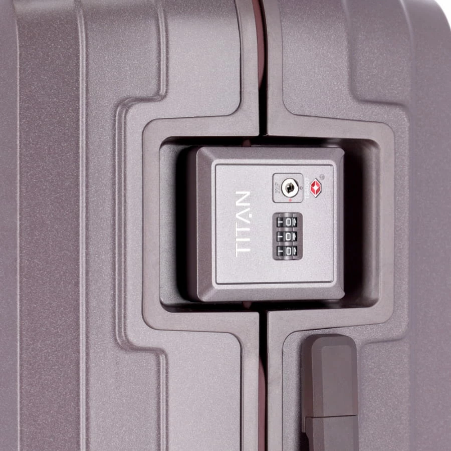 Der Titan Mervus Trolley wird aus besonders hochwertigem Polycarbonat gefertigt, was ihn zum Einen äußerst strapazierfähig macht und zum Anderen für eine sehr edle Optik sorgt. Auch bei allen anderen Materialien wurde auf kurze Transportwege („Made in Germany“) und eine umweltbewusste Produktion geachtet. Den großen Innenraum des Reisekoffers erreicht man über die beiden Schnappverschlüsse mit integrierten TSA-Zahlenschlössern (dreistellige Kombination frei wählbar). Hier findet man zwei große Innenfächer mit Packriemen, welche durch Reißverschluss-Trennwände voneinander abgetrennt sind. Weitere Innenfächer für Kleinteile runden den Innenraum des Koffers ab. Für einen hohen Transport-Komfort sorgen beim Titan Mervus Trolley die vier Zwillingsrollen, ergonomische Handgriffe und die mehrfach arretierbare Trolleystange.