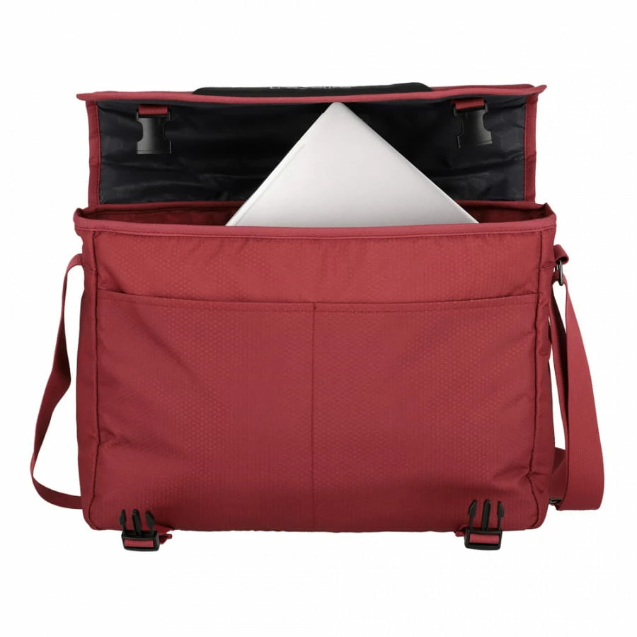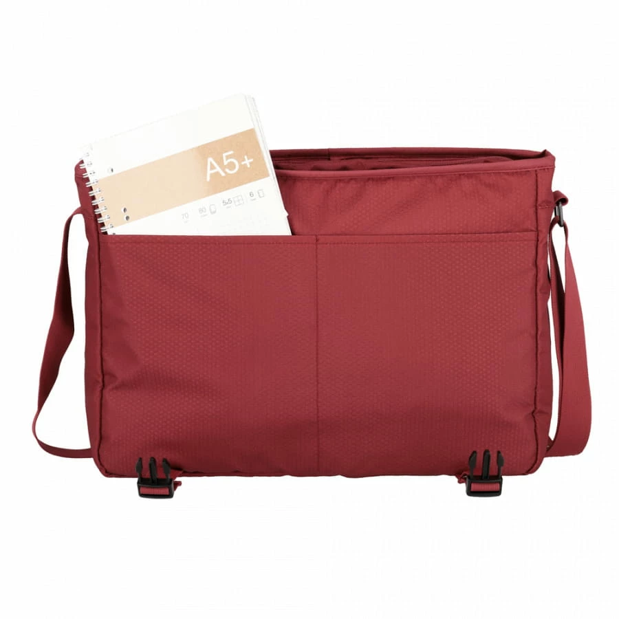 Als Reisebegleiter, Business- oder Freizeittasche eignet sich die Travelite Skaii Messenger Tasche bestens, denn mit zwei Einschubfächern unter dem Deckel, einem Reißverschlussfach am Rücken und dem großen Hauptfach mit mehreren Innenfächern (Mesh-RV-Fach, Visitenkartenfach, Stiftehalterungen) sowie einem 15,6 Zoll Laptopfach bietet sie reichlich Stauraum und Ordnungsmöglichkeiten. Getragen wird die aus recyceltem Polyester hergestellte Skaii Messenger Bag mithilfe des stufenlos verstellbaren Schultergurtes.